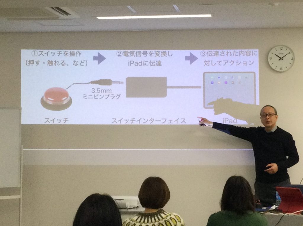 1月31日(土)、一般社団法人 結ライフコミュニケーション研究所代表理事・研究員ならびに東京慈恵会医科大学先端医療情報技術研究部の訪問研究員でもある有限会社オフィス結アジア代表取締役の髙橋宜盟さんを講師にお招きし「スイッチコントロール研修会(入門編)」を開催しました。